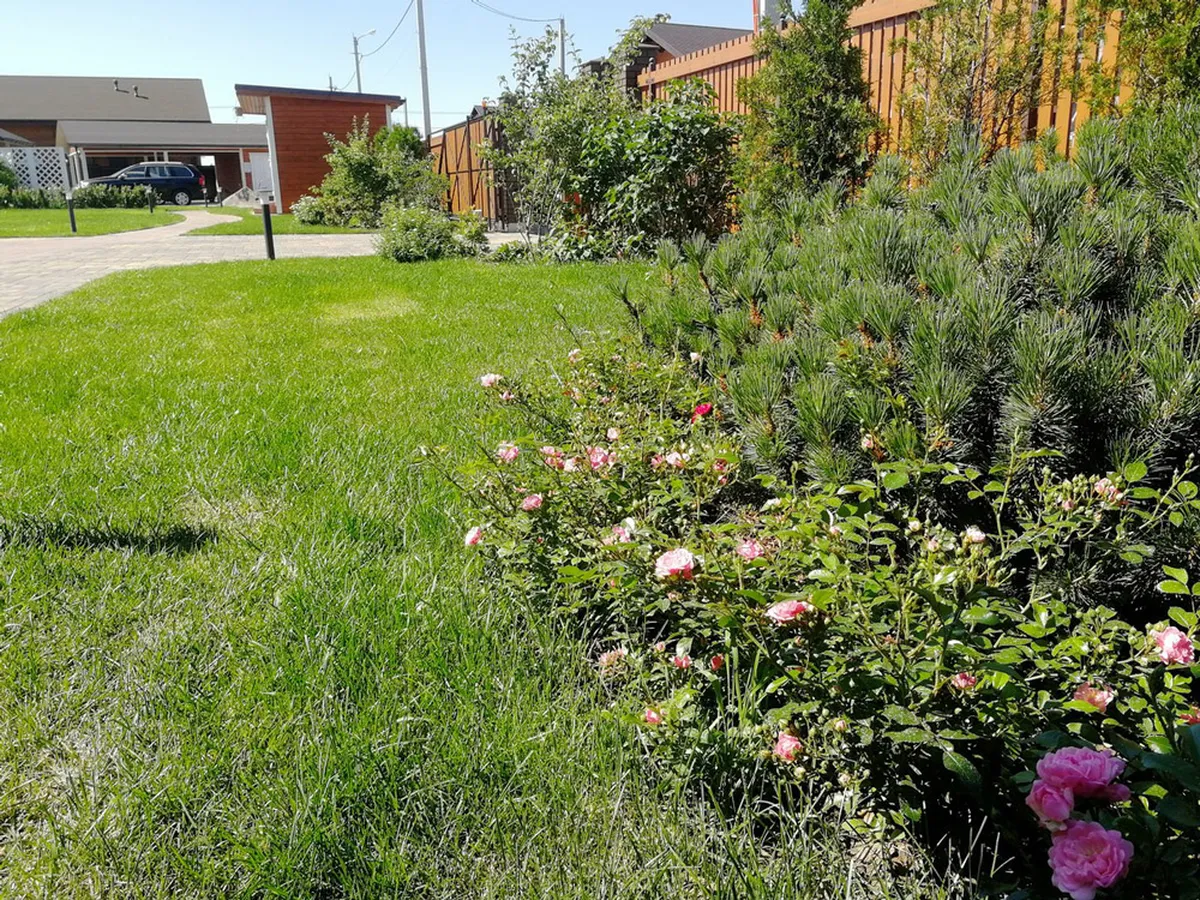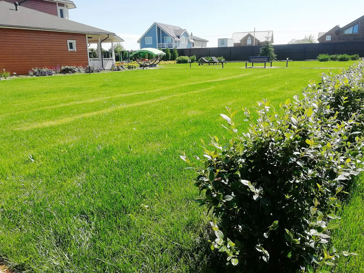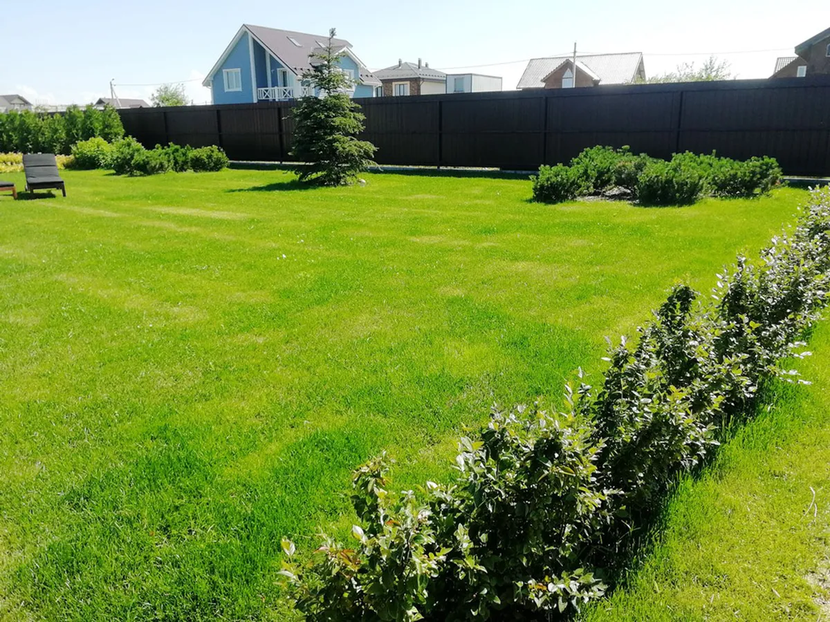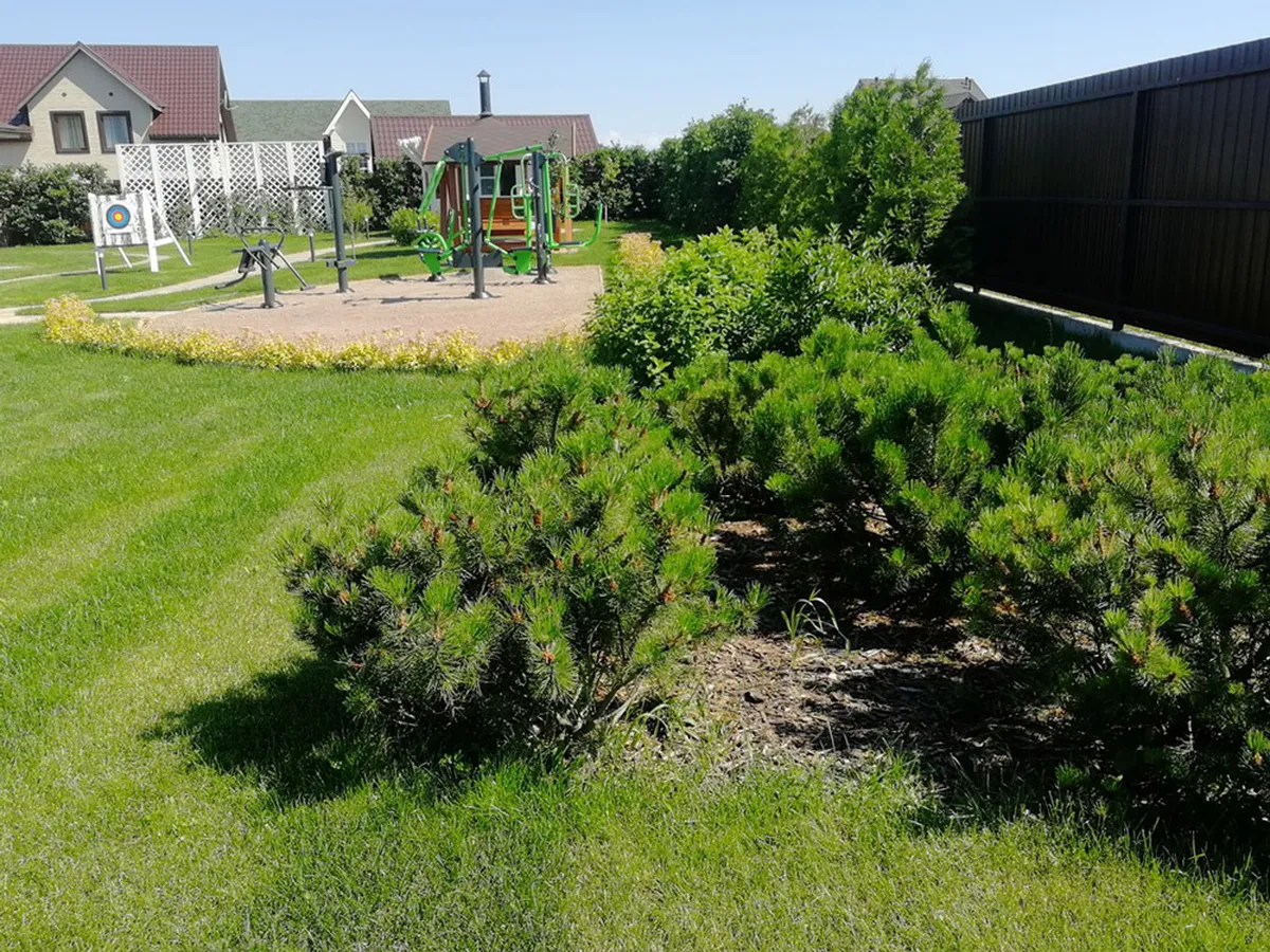 На этом ровном участке площадью 25 соток мы выполняли полный комплекс работ по благоустройству и озеленению территории.