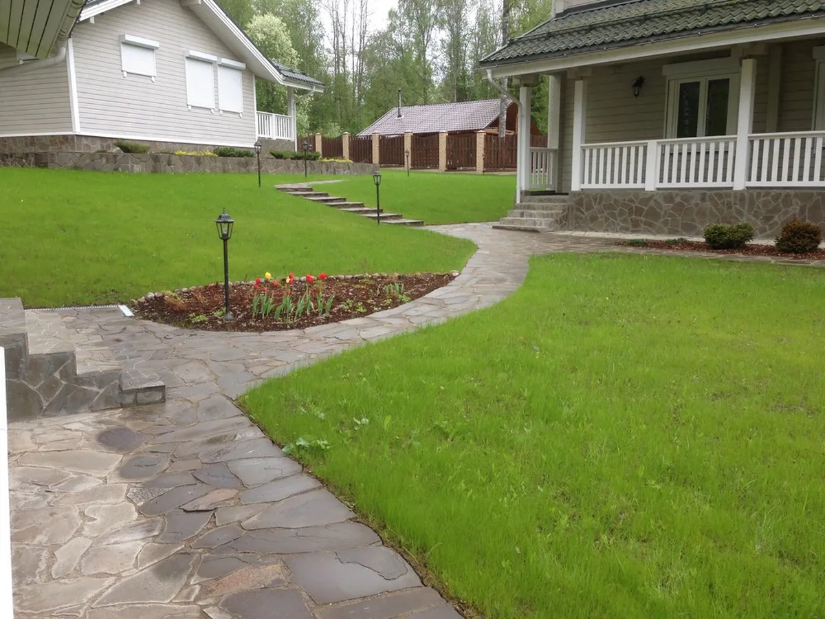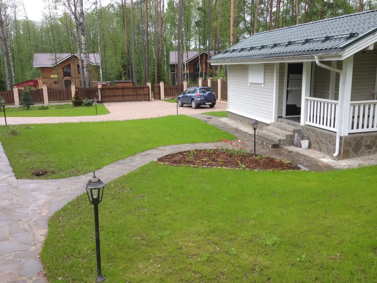 На этом объекте нашей задачей было выполнить полный комплекс ландшафтных работ по благоустройству и правильной геопластике территории. Площадь участка — 20 соток.