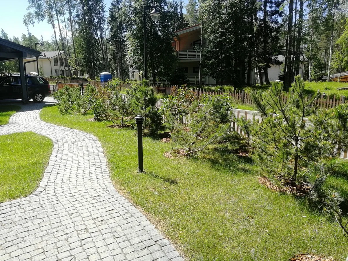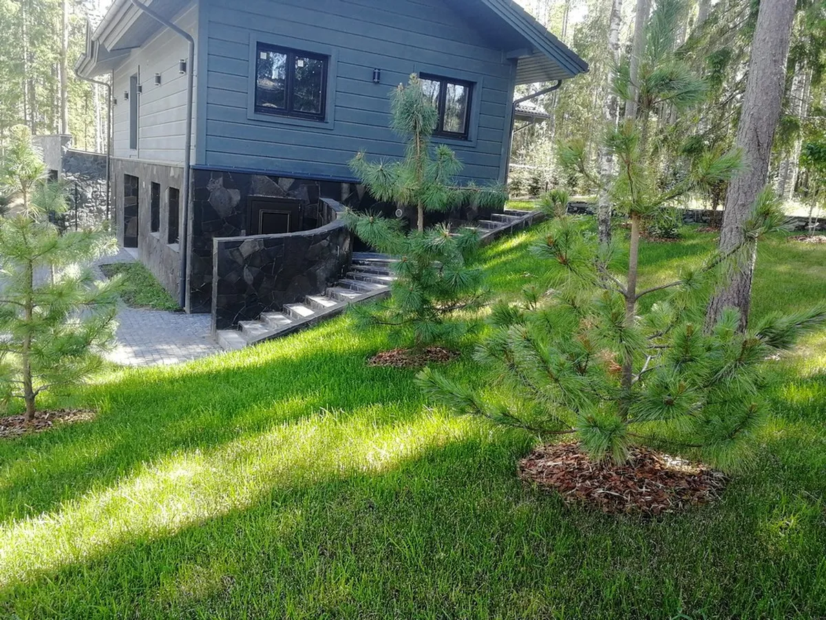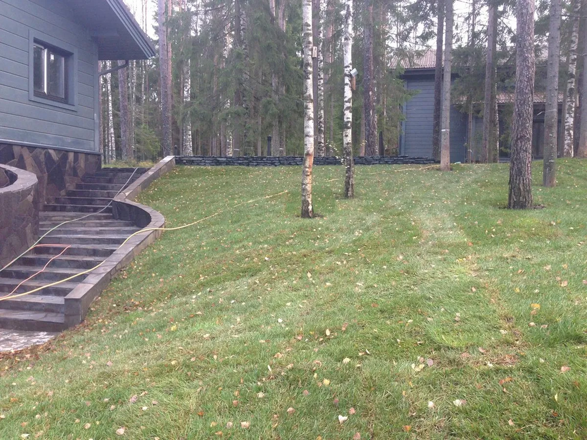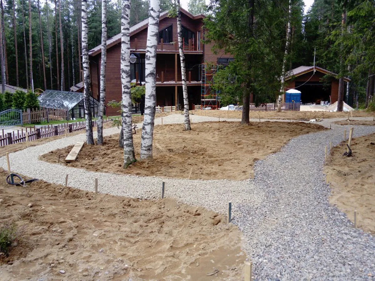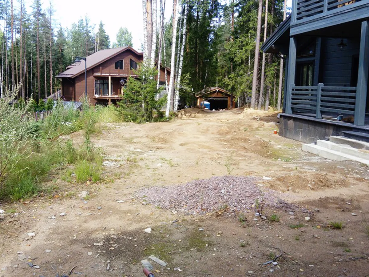 На этом рельефном лесном участке площадью 30 соток перед нами стояла задача - полностью благоустроить территорию и сделать правильную геопластику местности.