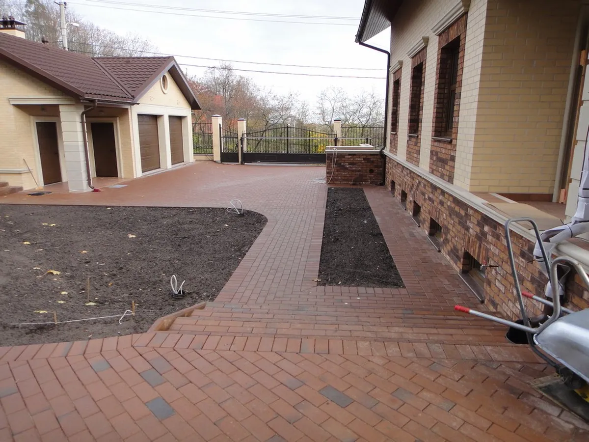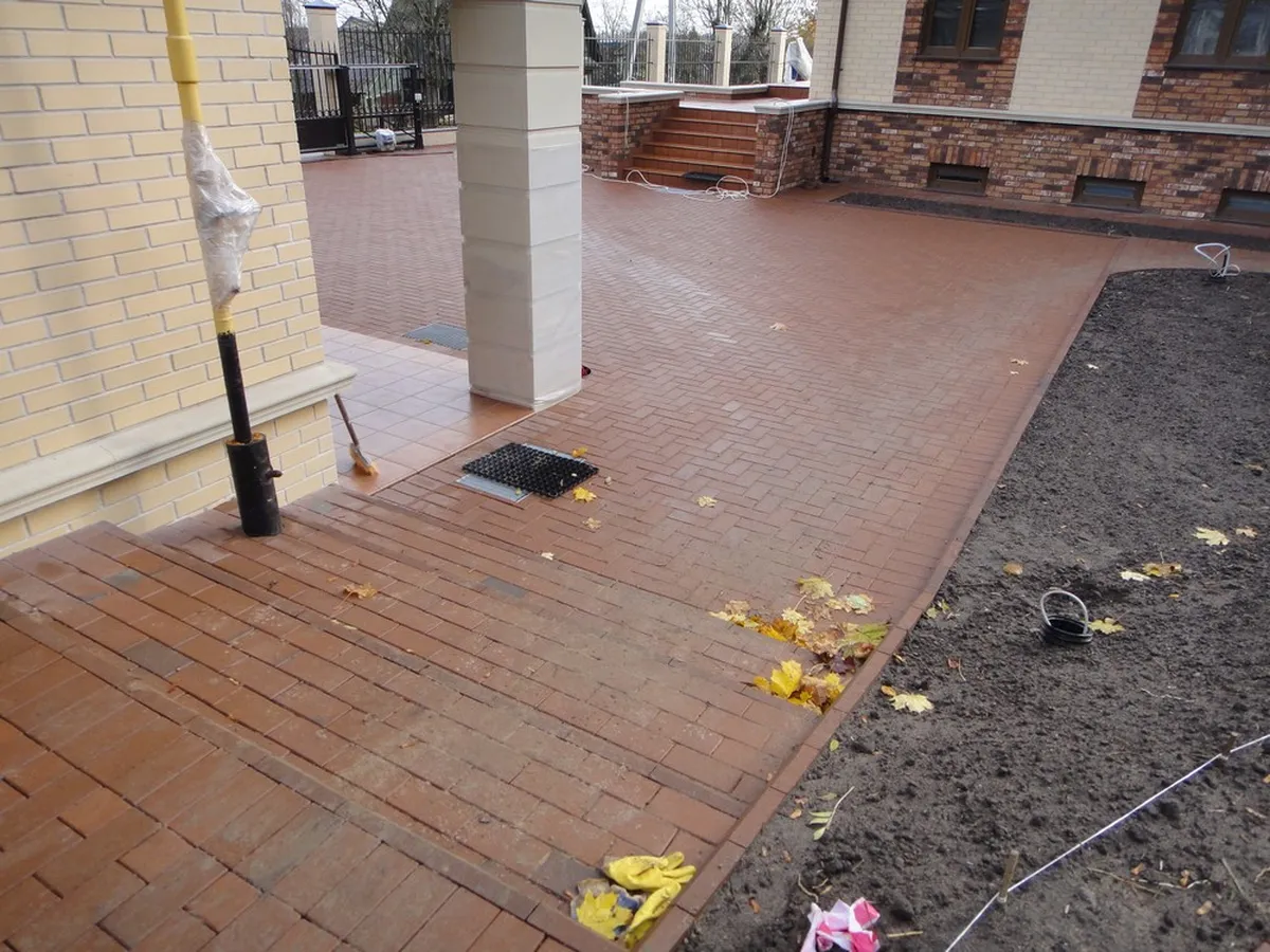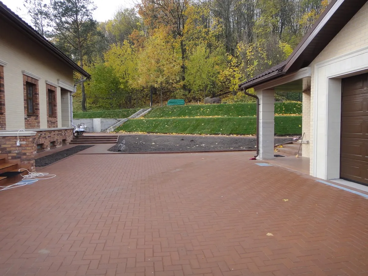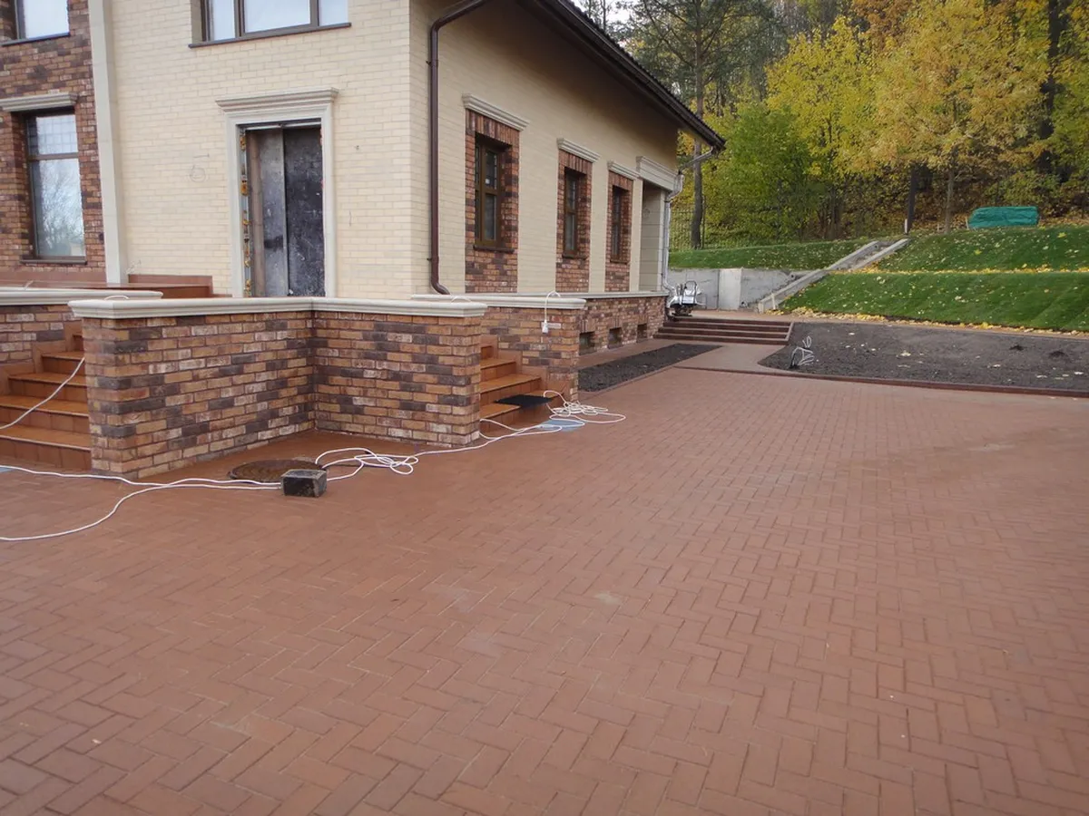 Мощение паркинга и пешеходных дорожек было выполнено из клинкерной тротуарной плитки. Во время подготовки основания для мощения была создана дренажная система, ливнеотводы и проложены электрические кабели для освещения.
