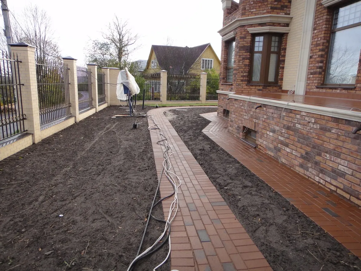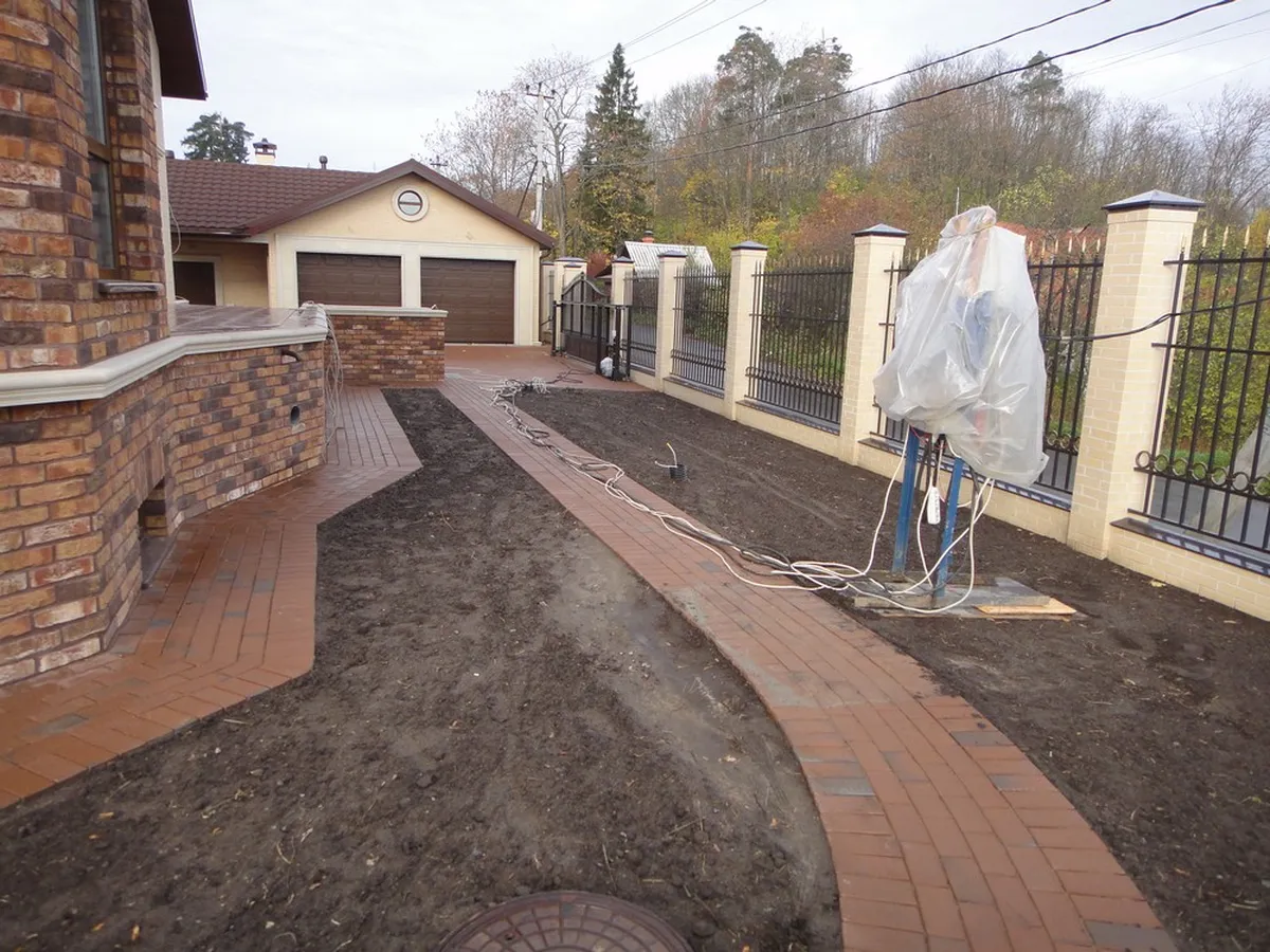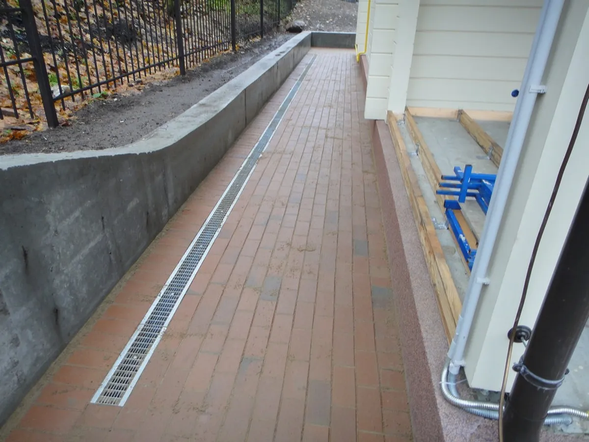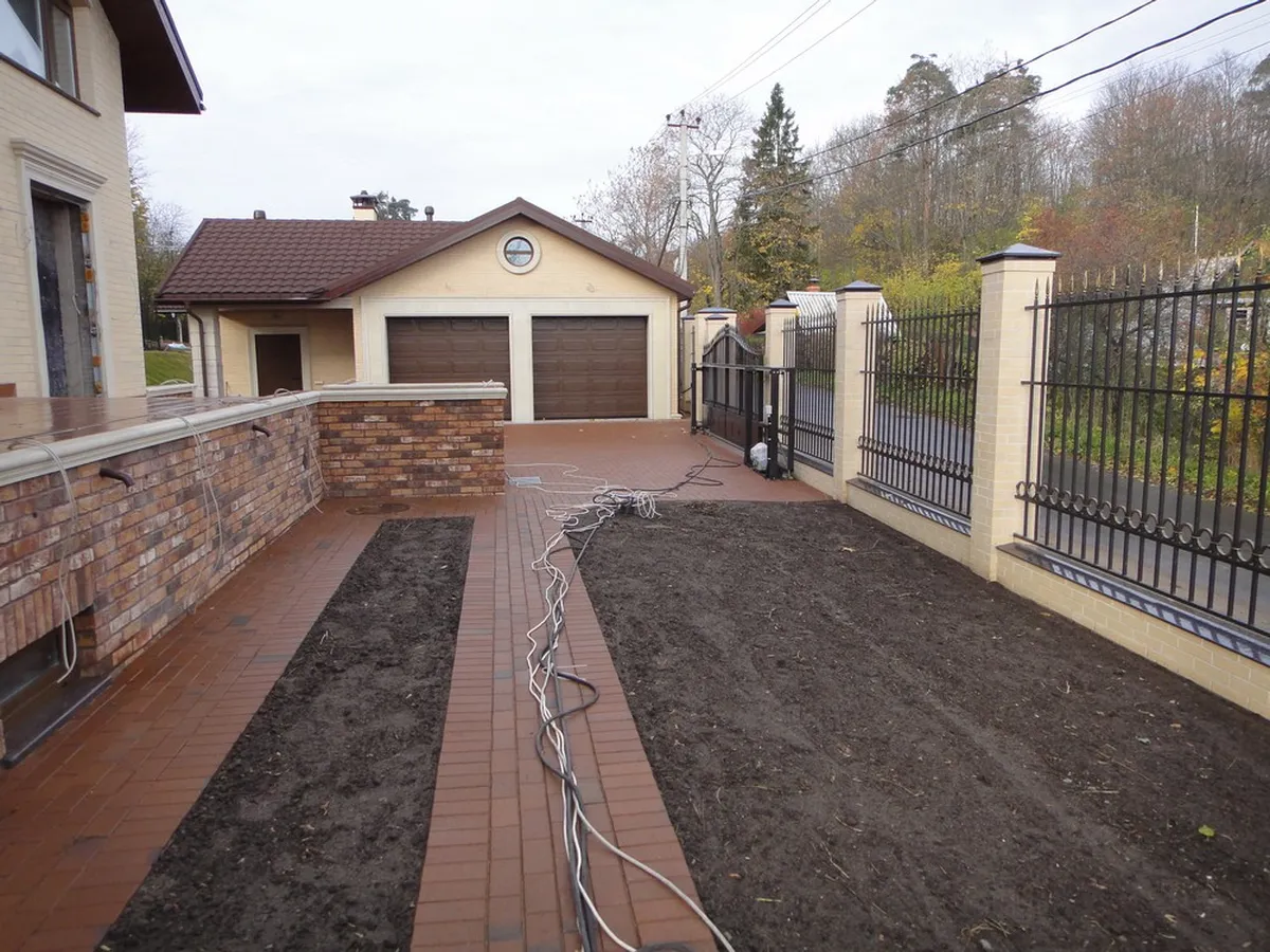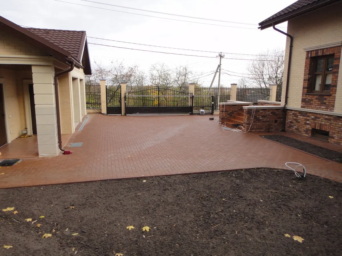 Мощение паркинга и пешеходных дорожек было выполнено из клинкерной тротуарной плитки. Во время подготовки основания для мощения была создана дренажная система, ливнеотводы и проложены электрические кабели для освещения.