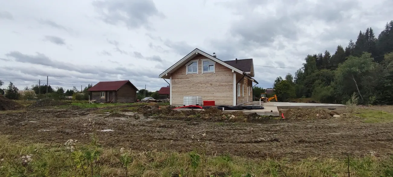 На этом рельефном участке площадью 60 соток перед нами стояла задача - полностью благоустроить участок, очистить и сформировать ручей протекающий на участке, и далее, для укрепления от оползания грунта уложить на склонах ручья гранитные валуны разной фракции.