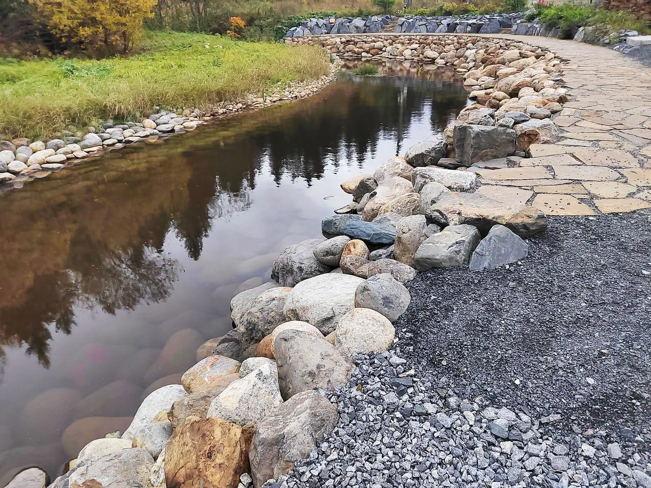 - устройство пешеходной дорожки из натурального камня на прибрежной зоне ручья;