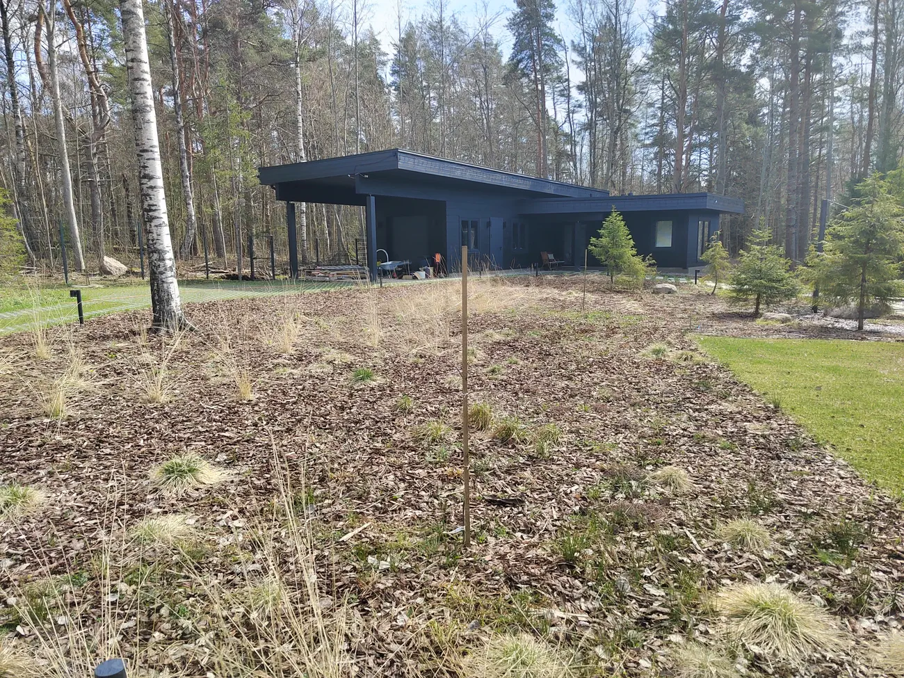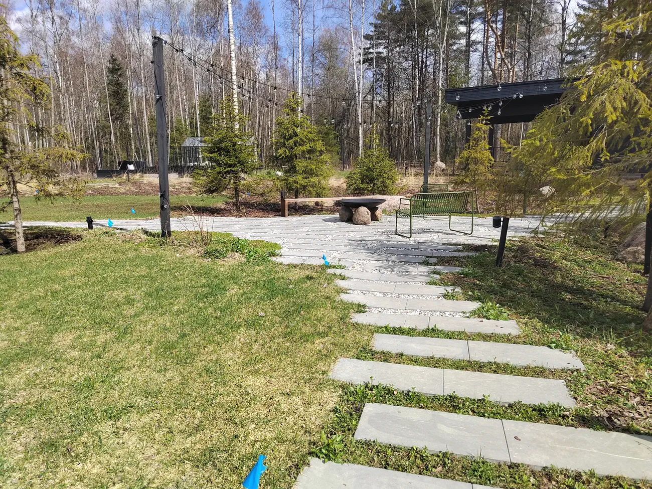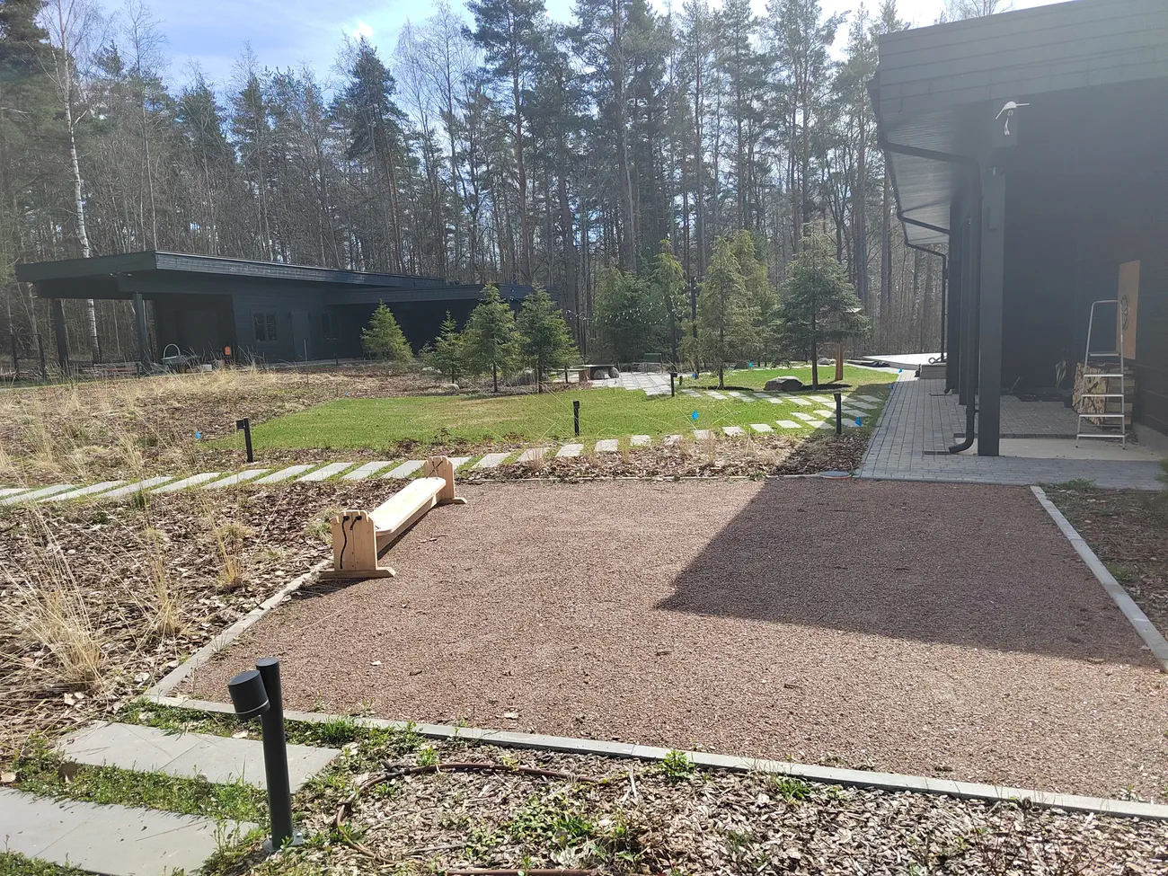 На этом рельефном лесном участке площадью 35 соток перед нами стояла задача - полностью благоустроить территорию и сделать правильную геопластику местности.