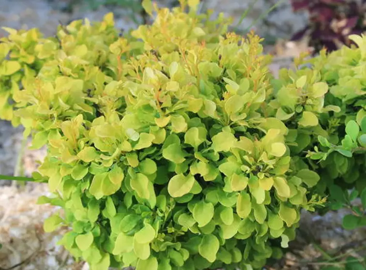Барбарис монетчатый (Berberis thunbergii) может достигать 1-2 м в высоту, диаметр кроны — до 1,5 м. Молодые ветви зеленые, с возрастом становятся коричневыми.