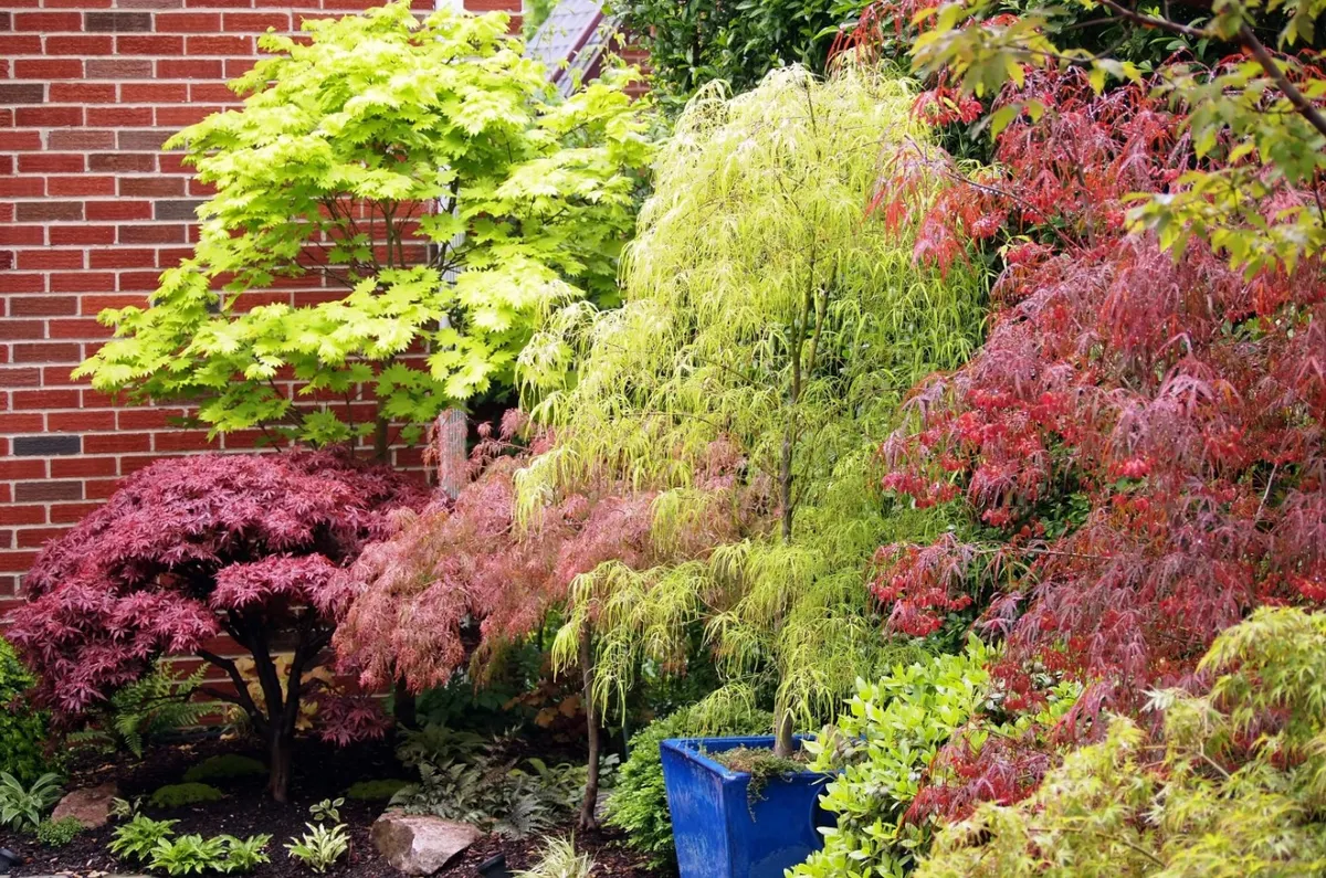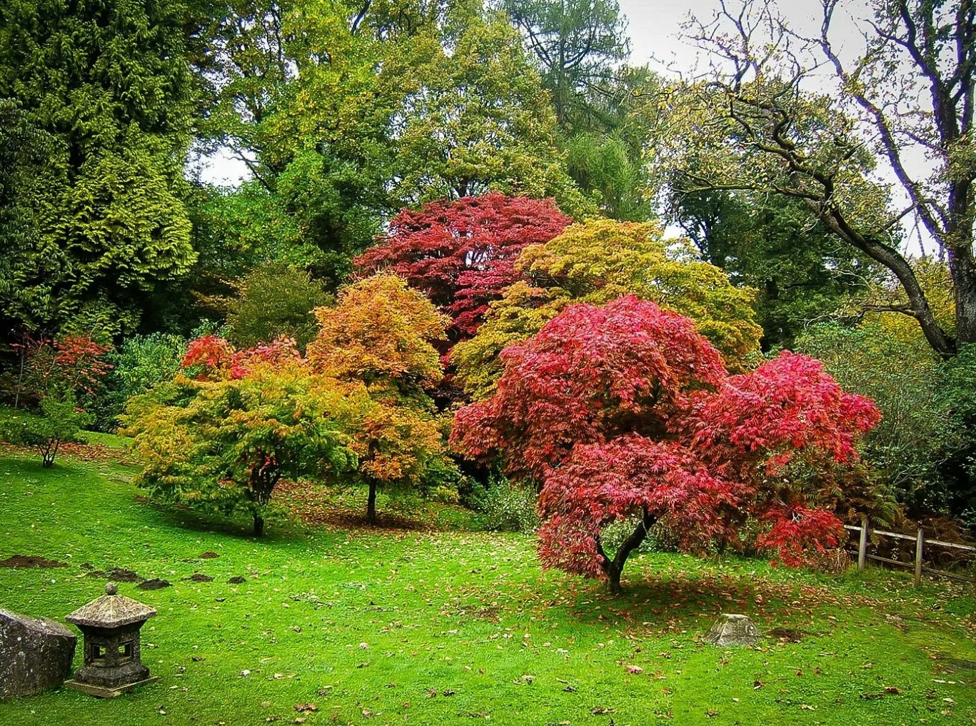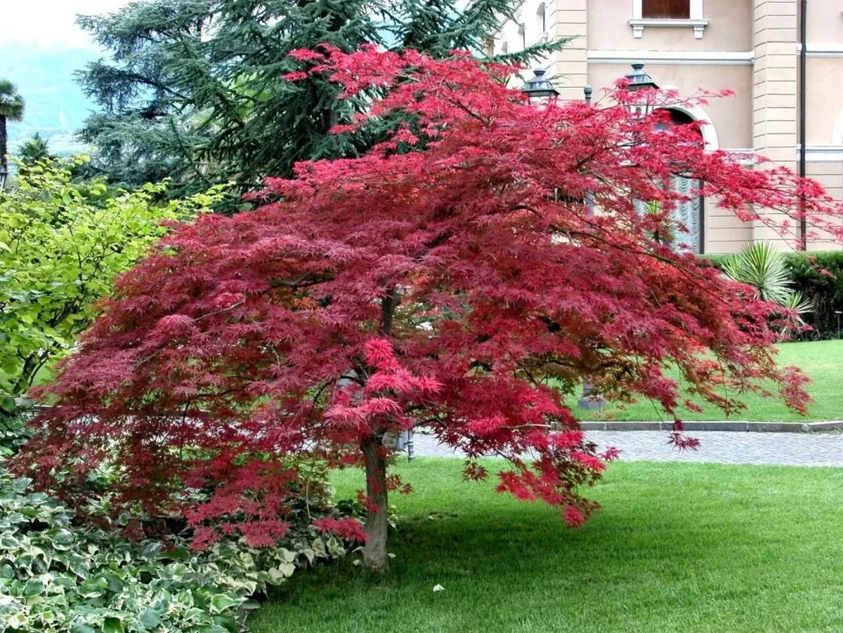 Некоторые японские клены (Acer palmatum) тоже универсальны, но по-другому. Они великолепны не только осенью, но и летом. Они демонстрируют яркий красный цвет, который мы ассоциируем с осенней листвой, в то время как большинство других деревьев все еще имеют зеленые листья.