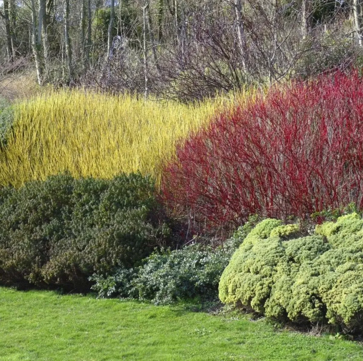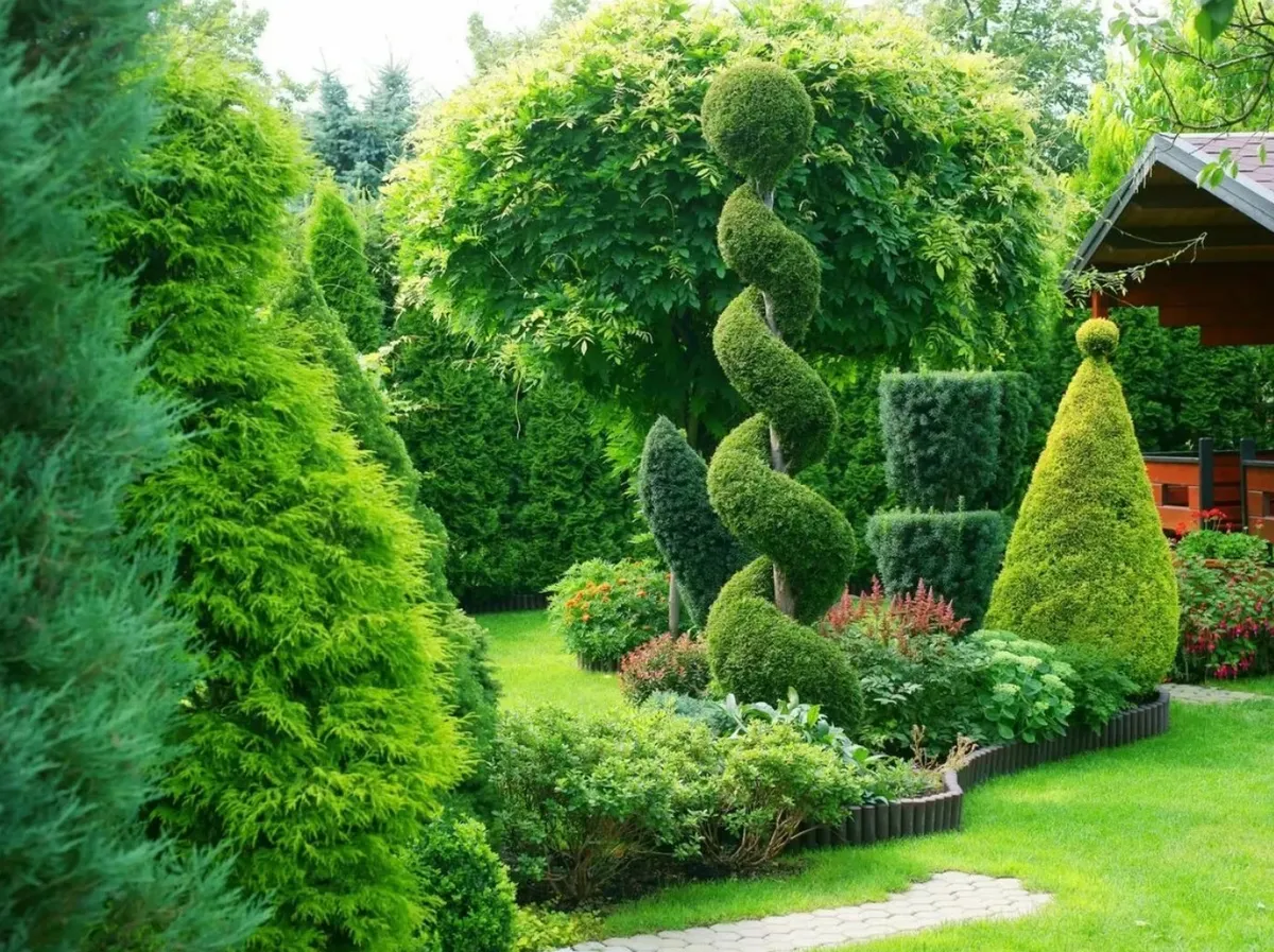Создавая свой ландшафт, подумайте о цвете и форме, в которую создадут деревья и кусты. Не бойтесь смешивать вечнозеленые растения с лиственными деревьями и кустарниками.