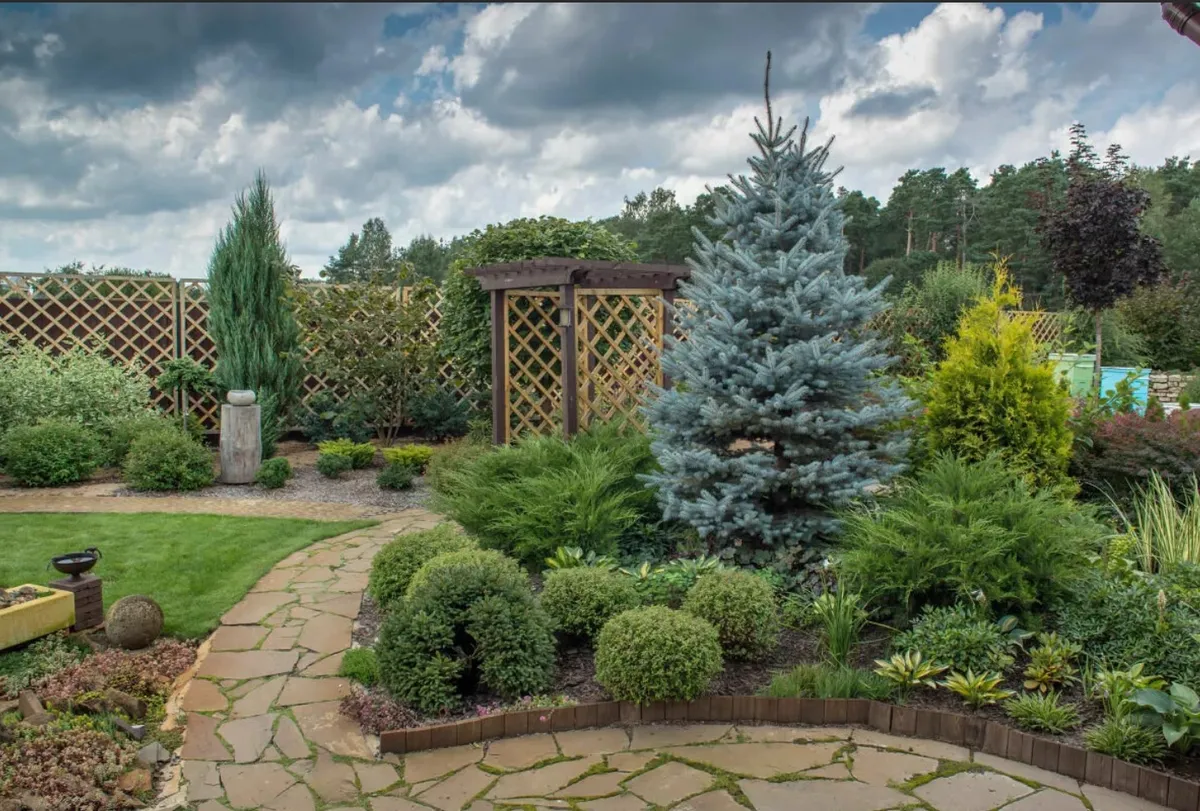 Ель обыкновенная и кипарисовик – приятели, которые создают отличные стены для уединения и имеют карликовые разновидности для небольших ландшафтов.