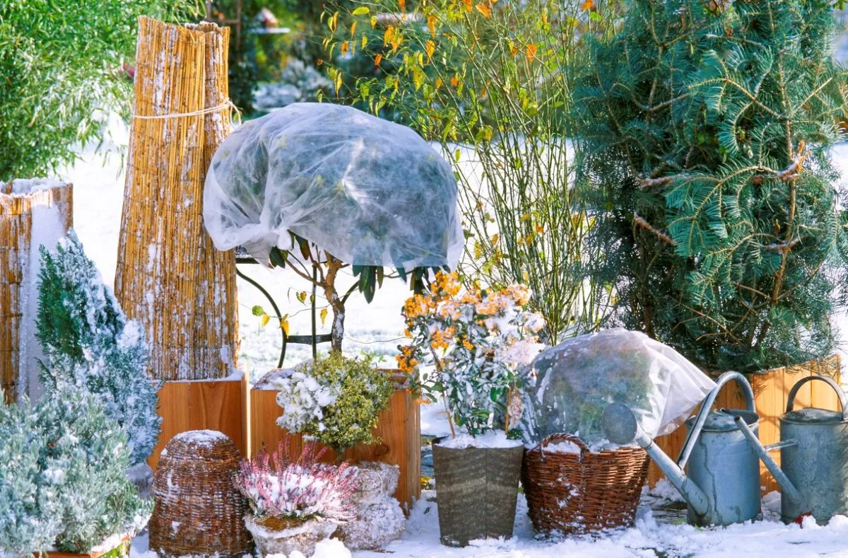 Все деревья и кустарники перед тем как укрывать, обильно залейте и дайте влаге впитаться. Очень большое количество кустарников вечнозеленые, хрупкие и поэтому ветки нужно связать, чтобы снег их не поломал.