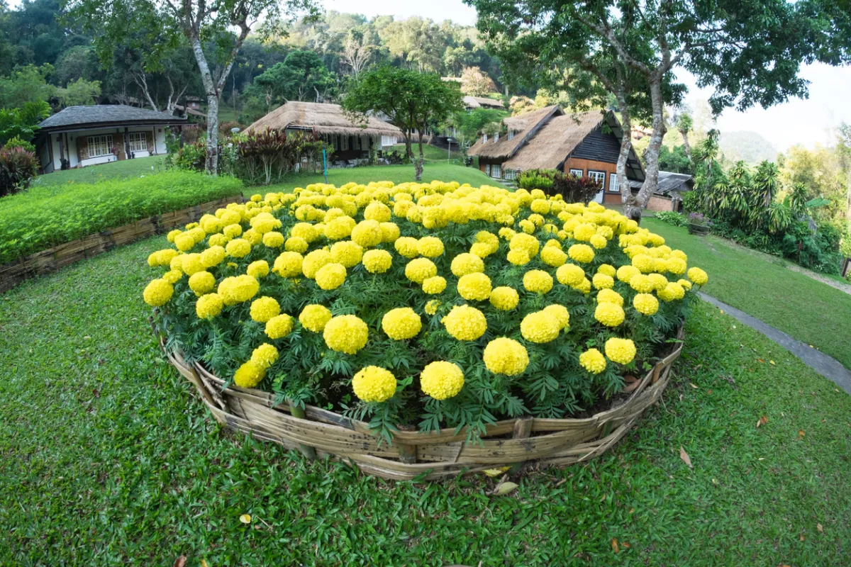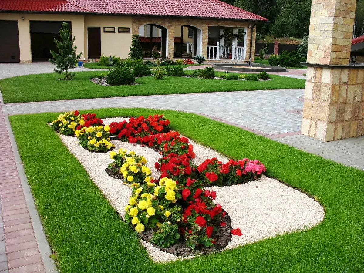 На большой территории доступно организовать клумбу с небольшим прудиком или соорудить хвойных цветник. Классикой остается рокарий, миксбордер и робатка.