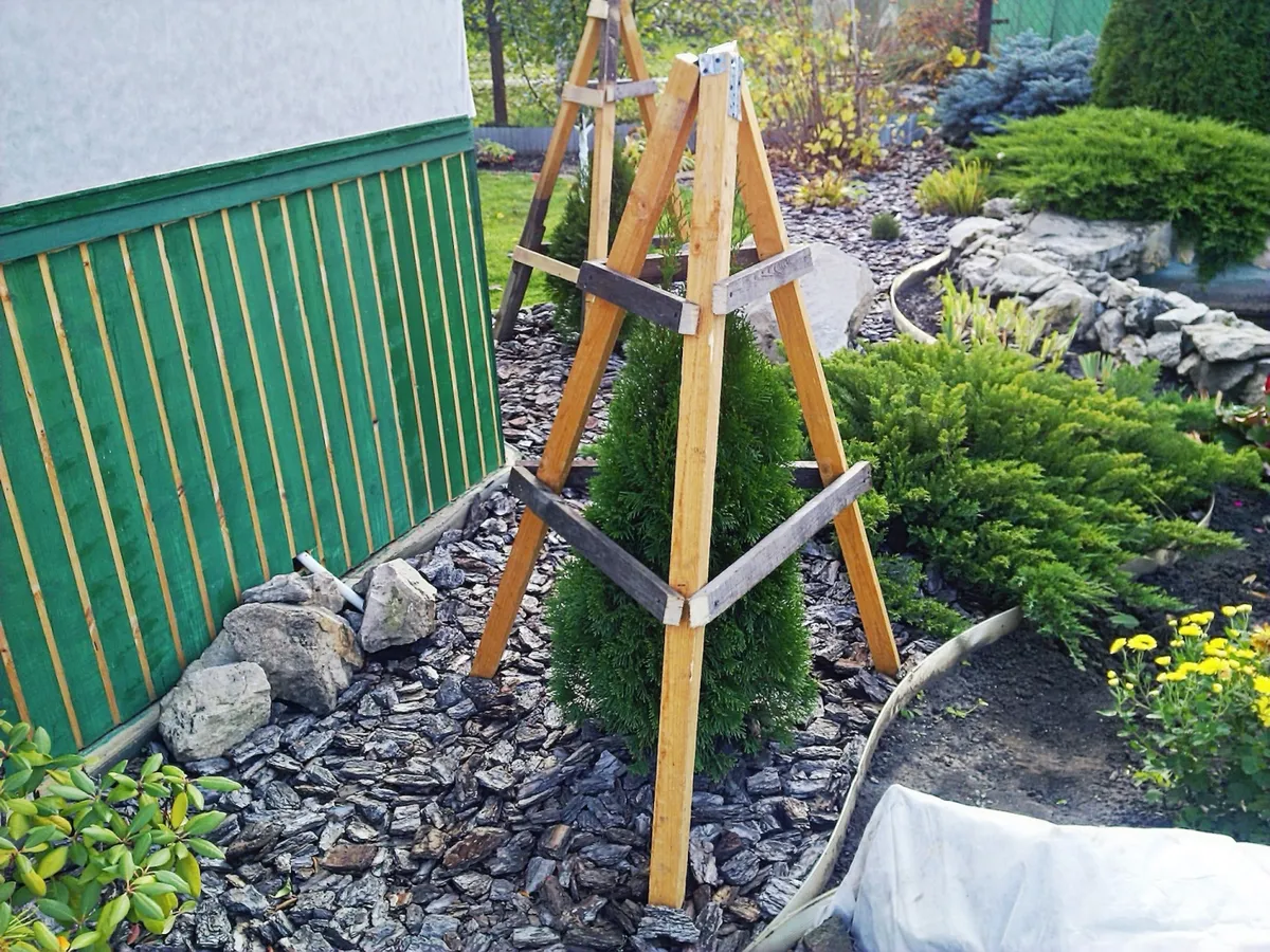 - При выборе саженцев с ЗКС лучше использовать пирамиду сразу из 3-х опор.