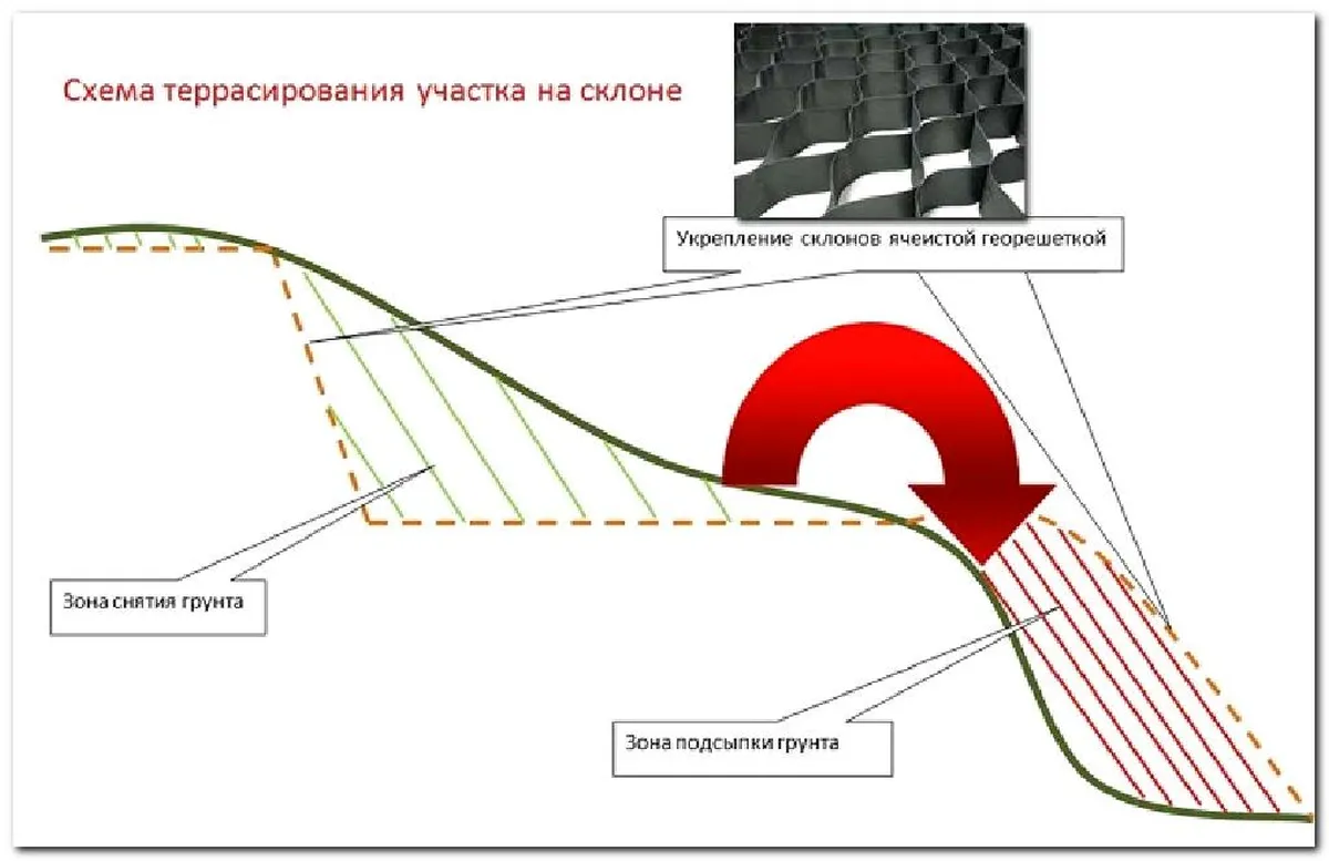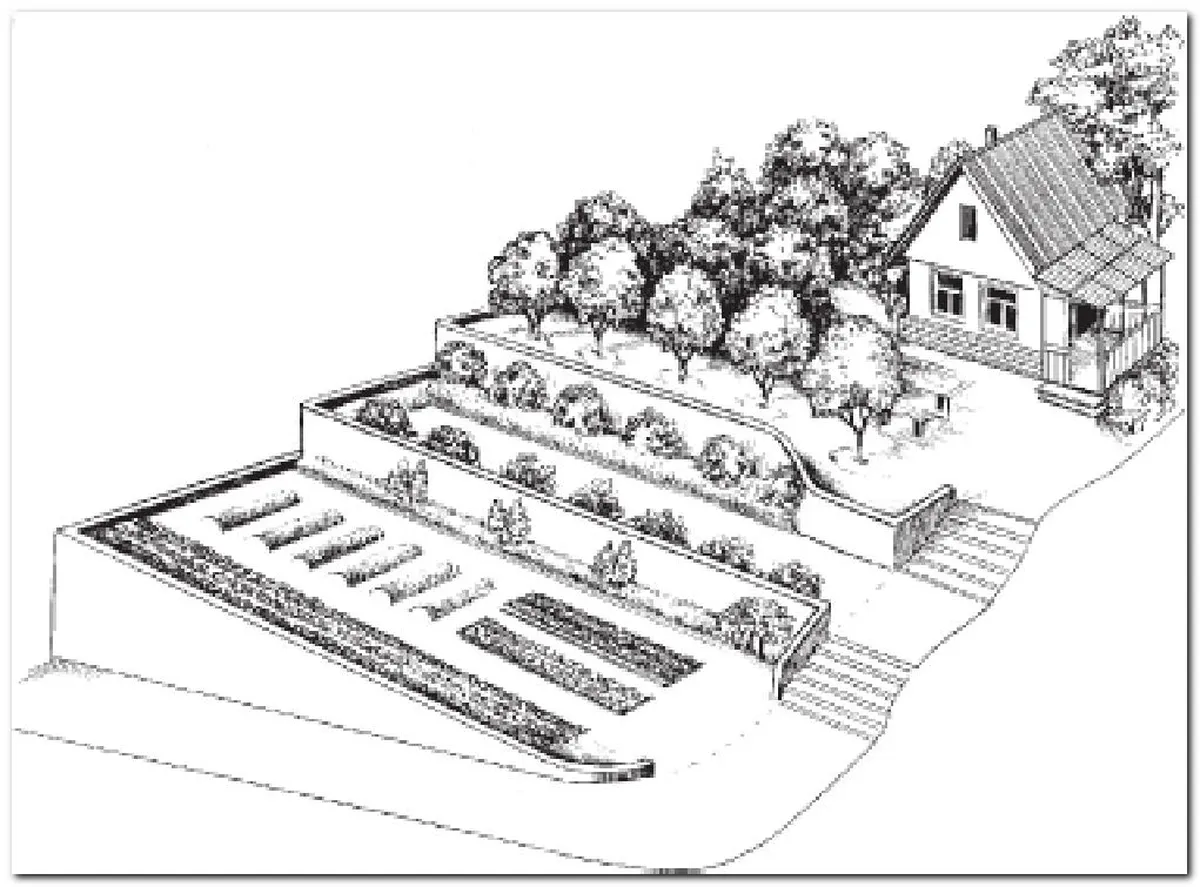 Финальным этапом процесса террасирования склона является оформление получившихся террас-площадок.