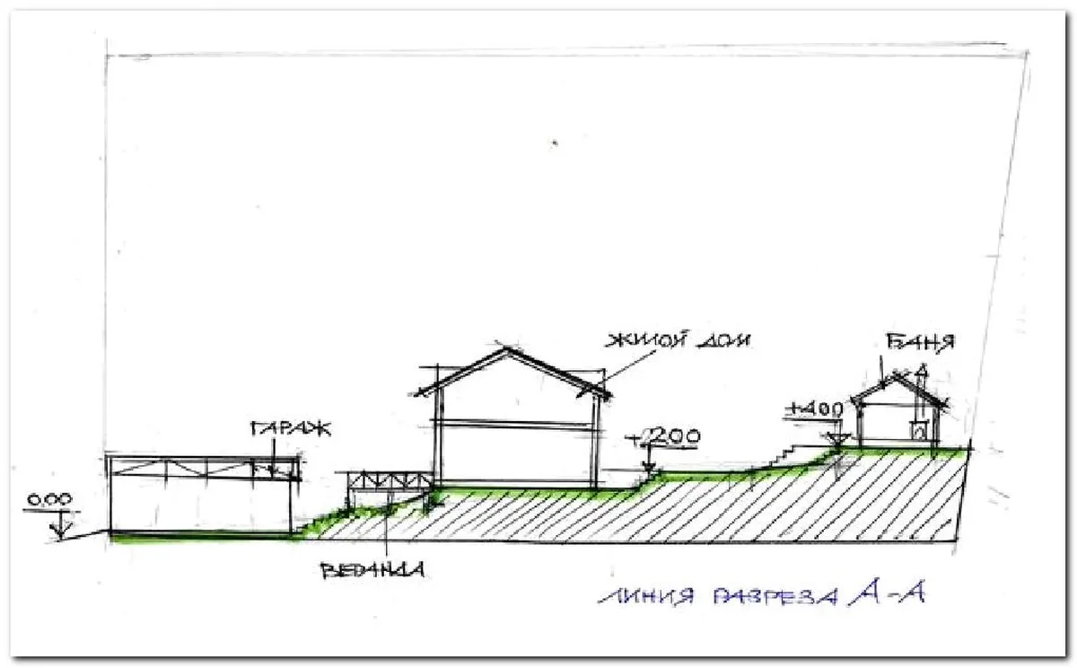 - При создании проекта участка стоит учитывать не только рельеф местности, но и расположенные там постройки.