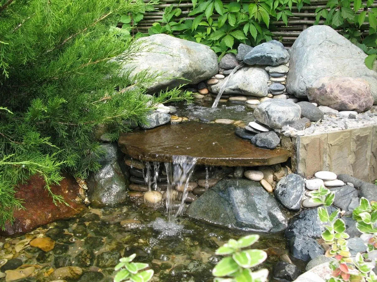Дизайнеры советуют установить поблизости такого водоема скамейки или беседку, чтобы можно было любоваться текущей водой и услаждать слух ее шумом.