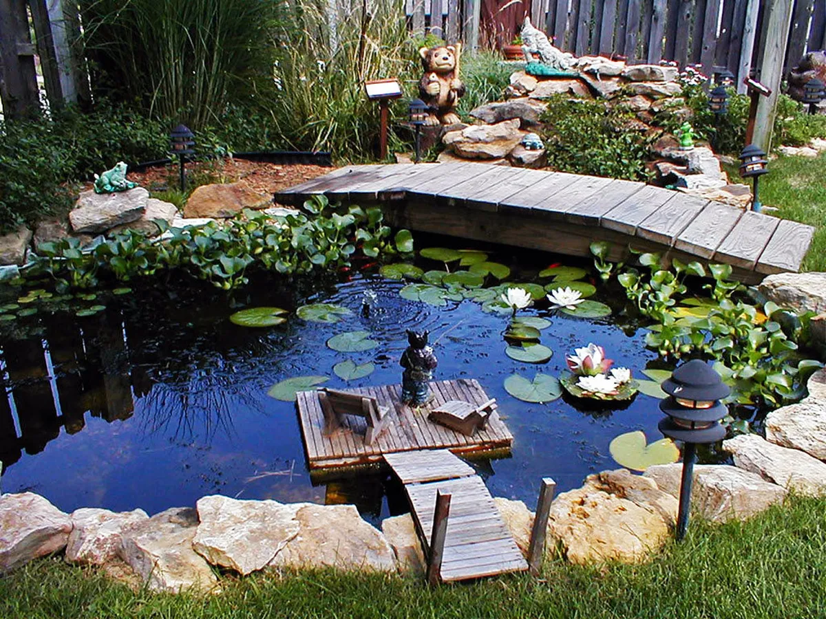 В специализированных магазинах без труда можно найти различные статуи, водяные мельницы и другие фигуры для декорирования водного участка. Приобретая их, учтите размеры проектируемого водоема, да и всей облагораживаемой территории.