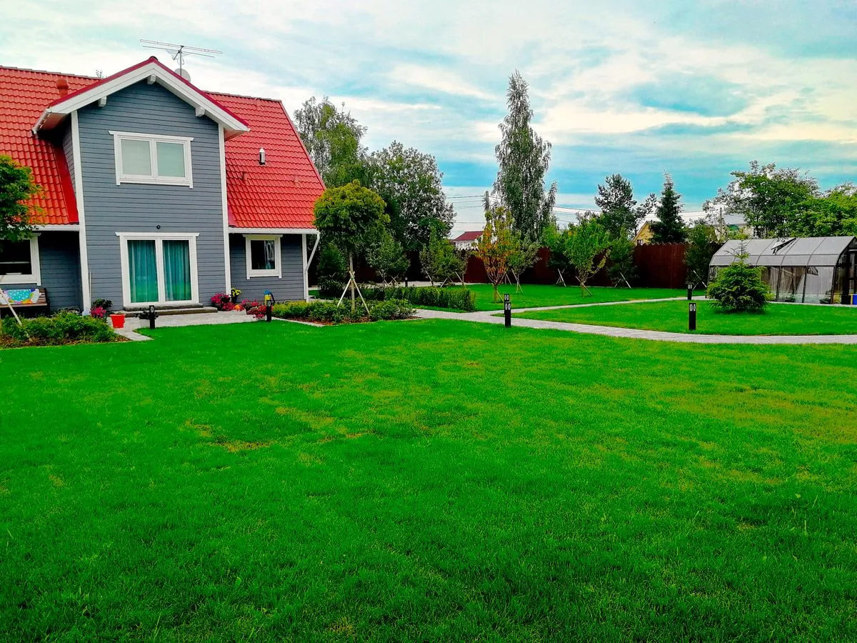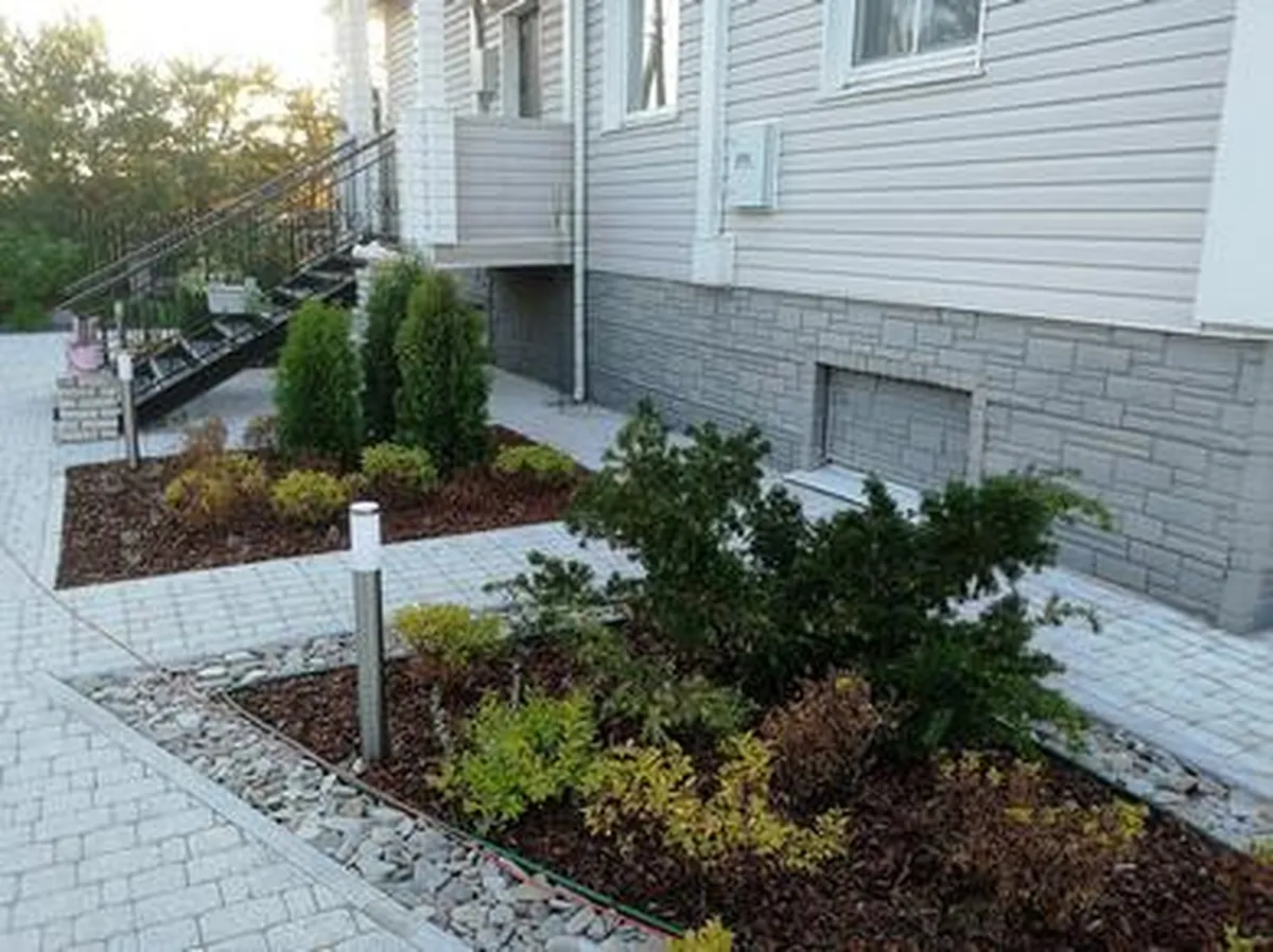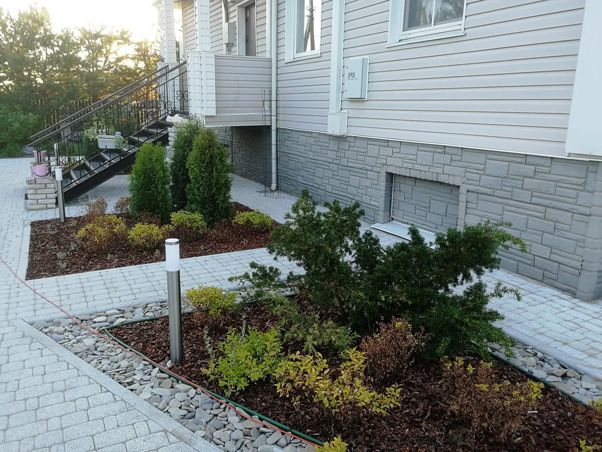 На территории площадью 25 соток, мы выполняли полный комплекс работ по благоустройству и озеленению территории. Срок работ — 45 дней.