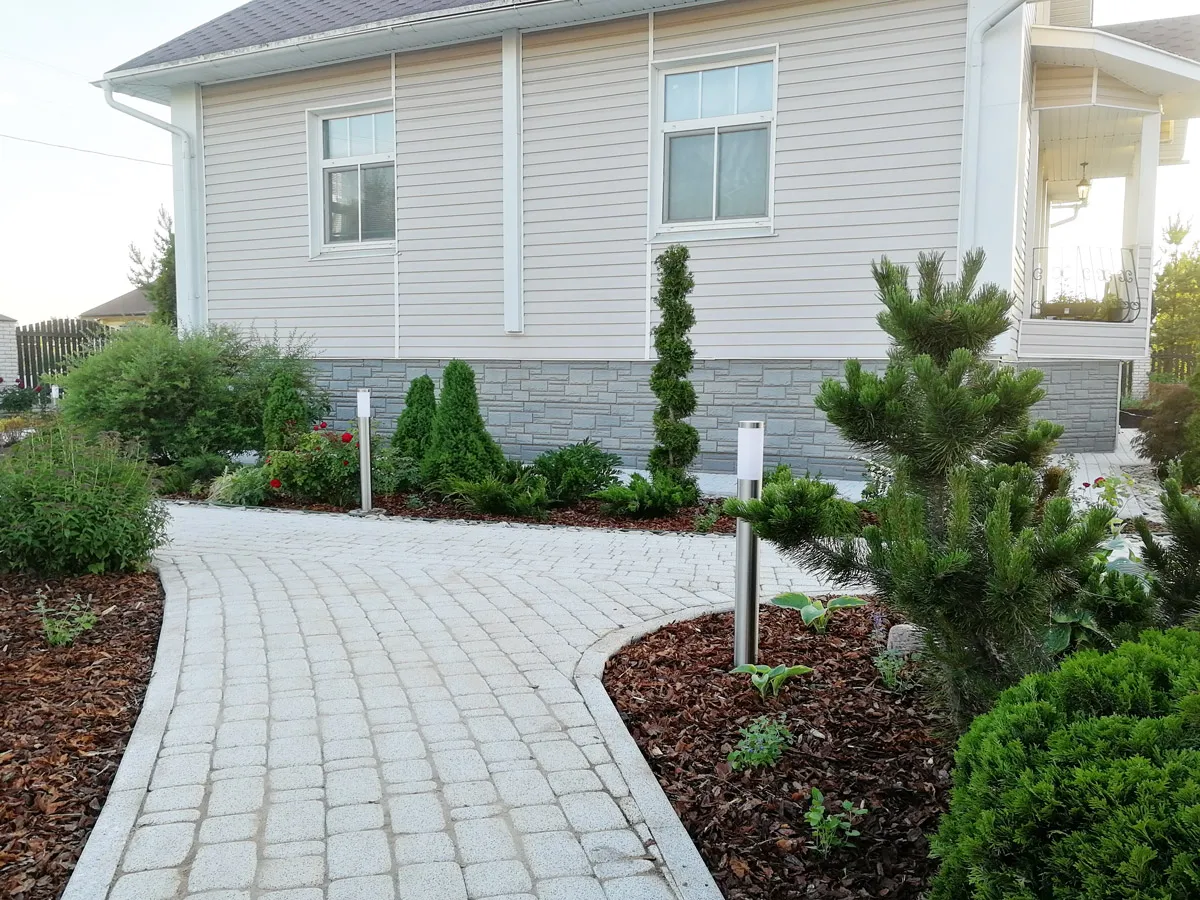 - мощение тротуарной плиткой;