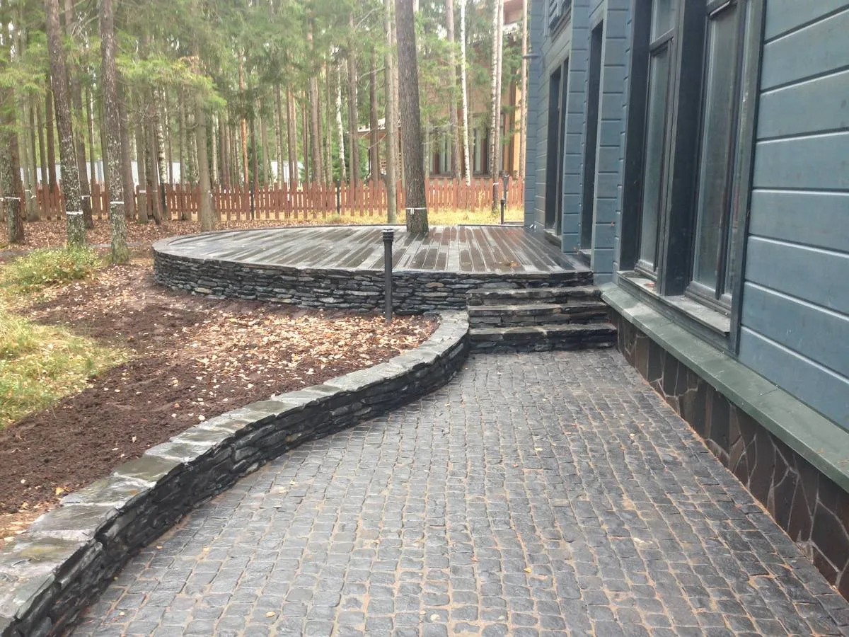 Зависит ли ваш участок от особенностей рельефа или наличия водостоков? Нет проблем. Мы применяем облицовочные плиты, идеально подходящие для любой местности, будь то террасы, парковки или дорожки во дворе. Также предусмотрена отмостка и установка водостоков.