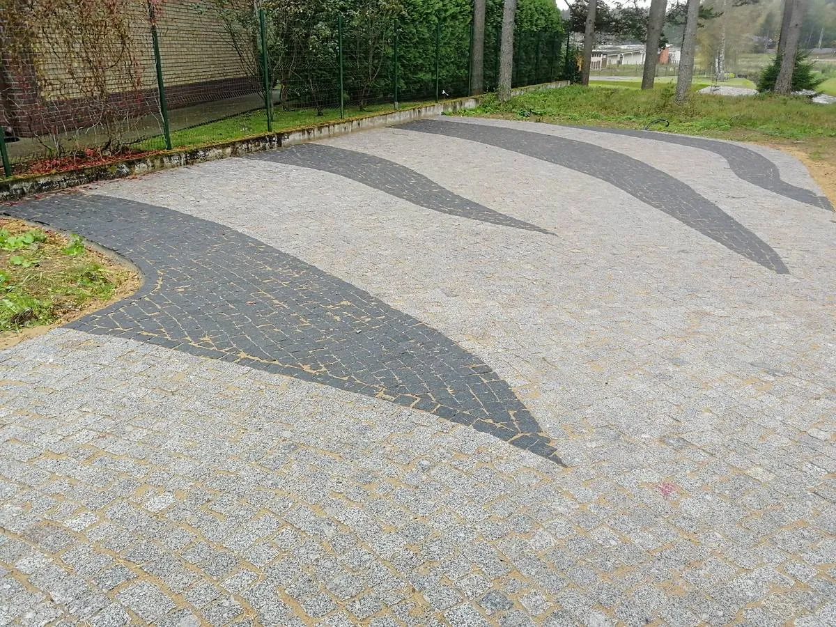 - Мощение должно производиться плиткой из разных палет. Это правило относится ко всем цветам. Во время работы всю поверхность брусчатки нужно прикрывать полиэтиленовой плёнкой, чтобы не загрязнить её грунтом.